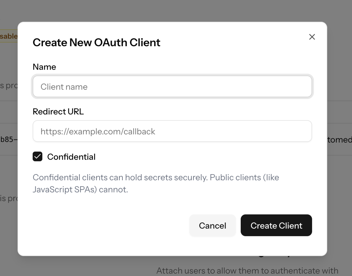 Các project sẽ sử dụng cặp client credentials này để triển khai authentication.